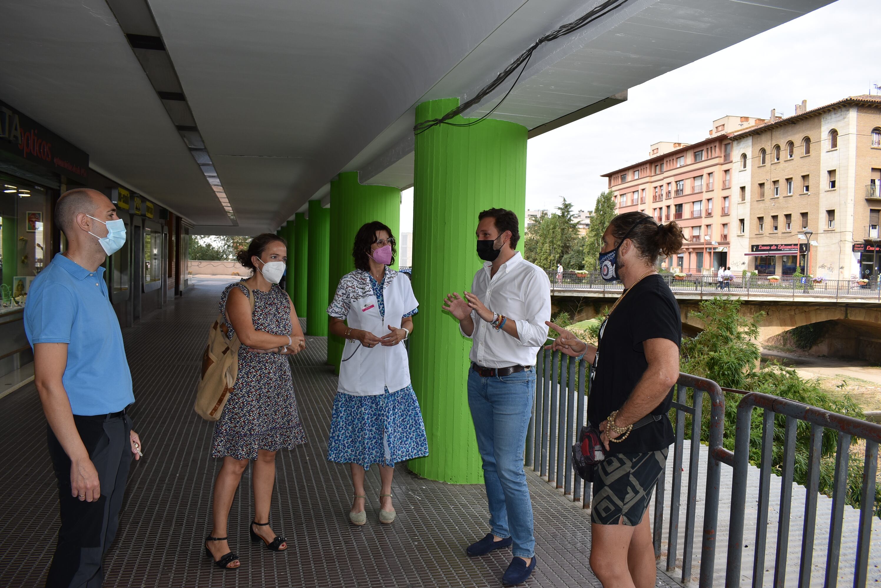 Este espacio privado de uso público acoge una de las acciones de esta campaña que trata de mejorar un espacio muy transitado de la ciudad y, a su vez, concienciar sobre la importancia de mantener, entre todos, limpia y cuidada la ciudad. Para ello, se han pintado las columnas con colores que van desde el azul hasta el verde, haciendo un juego de degradados que concede una imagen fresca y renovada y representa los colores de la campaña.