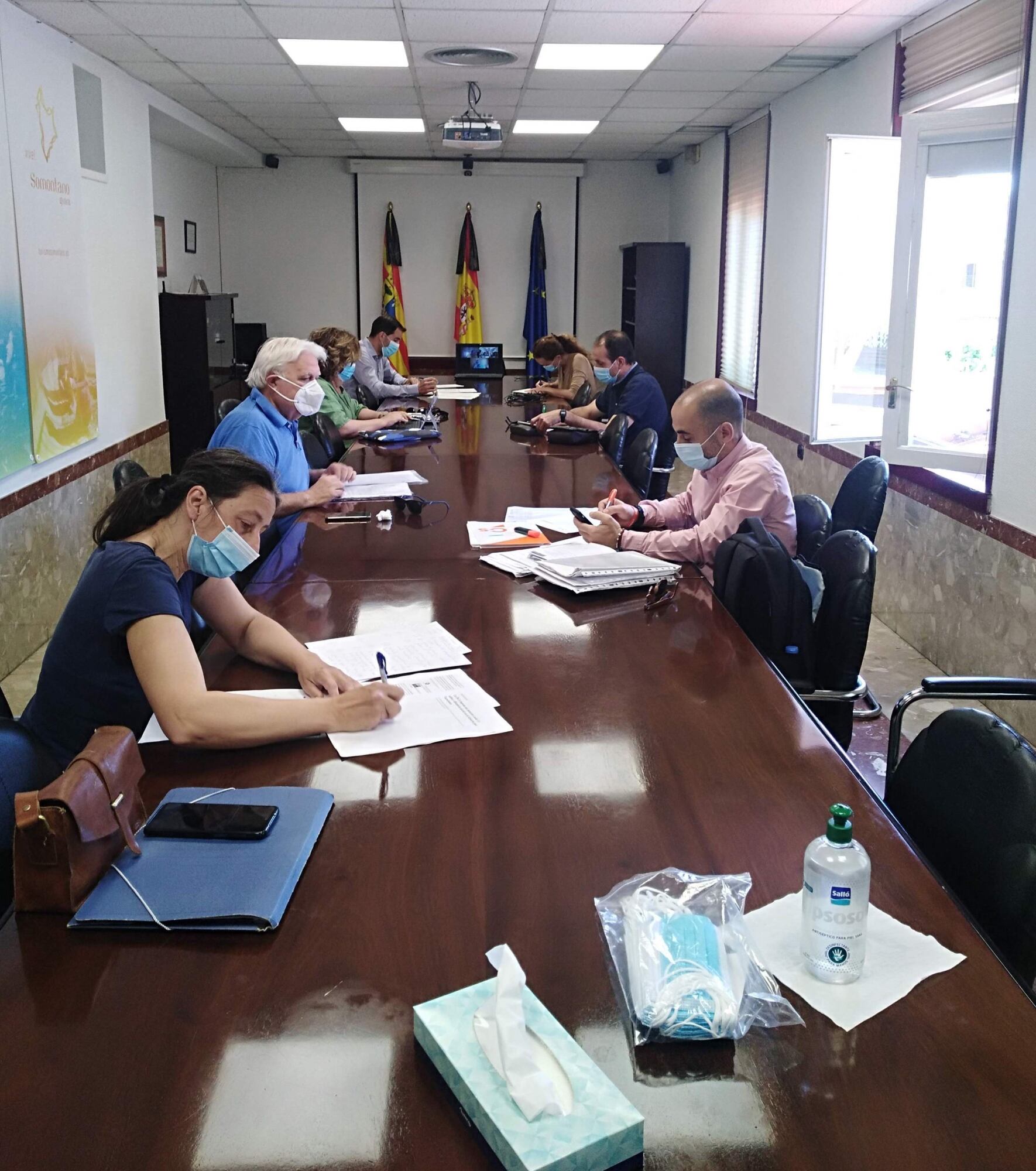 Por otro lado, la Comarca de Somontano va a distribuir equipos de protección (EPIs) para cada ayuntamiento compuestos por dispensadores de geles hidroalcohólicos automáticos, postes y cadenas para dirigir el flujo de personas y una pantalla de protección para la secretaría o personal administrativo. Una iniciativa planteada por el presidente y que era respaldada por unanimidad por los portavoces.