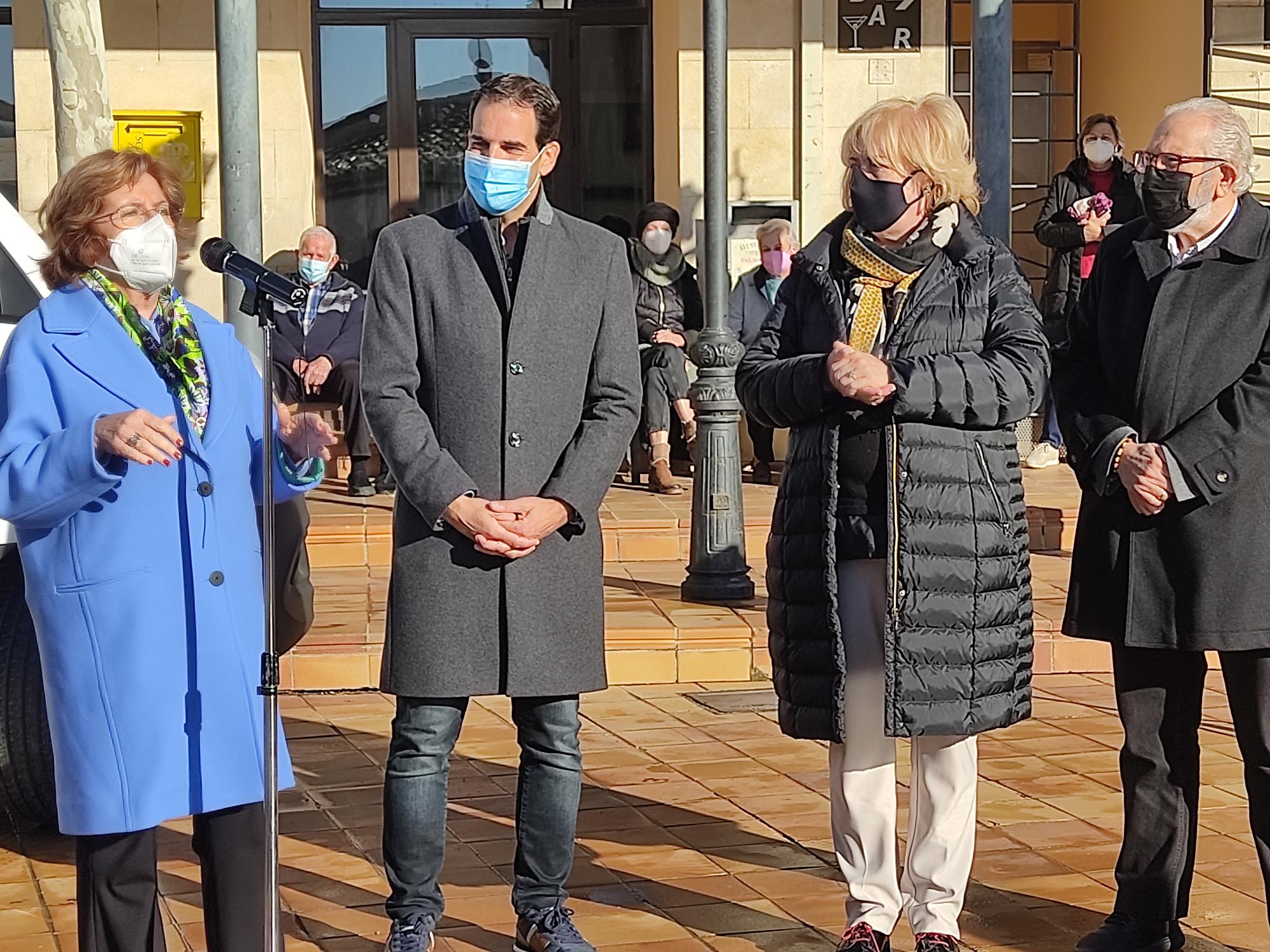 La consejera de Ciudadanía y Derechos Sociales, María Victoria Broto, asistía a la presentación del nuevo servicio de transporte social adaptado y del vehículo que dará cobertura a los 28 municipios del Somontano en la plaza Mayor de Salas Altas, en presencia del presidente de la comarca, Daniel Gracia, y de la alcaldesa de la localidad, Isabel Lisa.