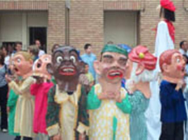 La comparsa de gigantes y cabezudos protagoniza el programa infantil de las fiestas de Barbastro