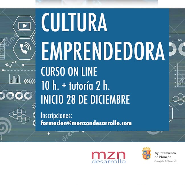 La Concejalía de Desarrollo del Ayuntamiento de Monzón organiza un curso online gratuito de cultura emprendedora. Diez horas de formación y dos de tutoría que arrancan el lunes 28 de diciembre y para el que ya está abierto el plazo de inscripción.