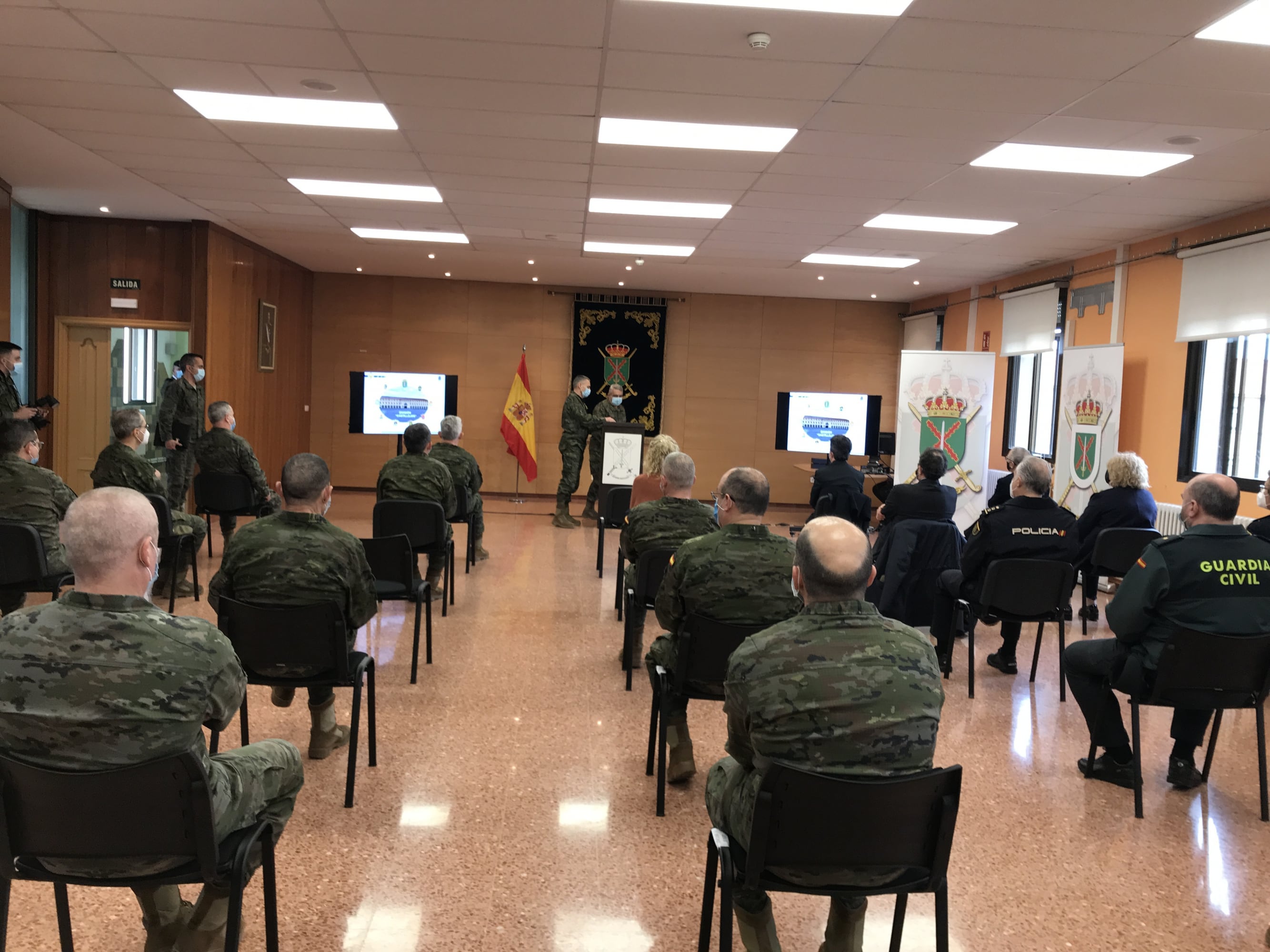 Con este acto de presentación del Cuartel General, se materializaba y escenificaba un proceso iniciado hace dos años y medio con los trabajos de acondicionamiento del acuartelamiento. Tuvieron un primer punto de partida en junio del año pasado con el traslado de las unidades y se han completado con el inicio de este año.