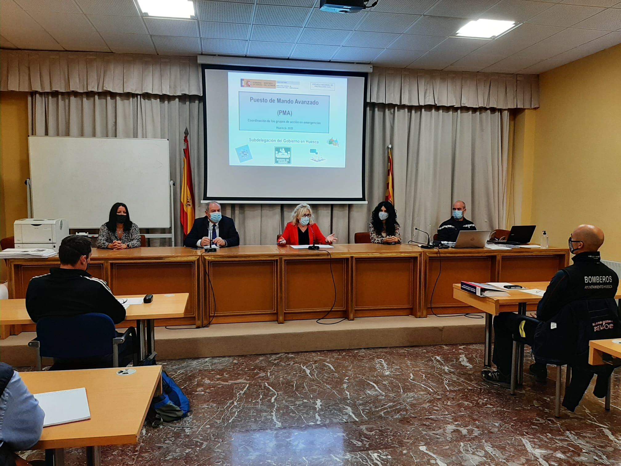 Hasta el 30 de septiembre Huesca acoge el curso de la Escuela Nacional de Protección Civil cuyo objetivo es trasladar a los profesionales de los diferentes servicios que conforman el Sistema Nacional de Protección Civil las experiencias adquiridas en la gestión desde un puesto de mando y las herramientas de conducción de crisis ante emergencias. Se trata de una de las pocas actividades formativas descentralizadas que realiza en este 2020 la Escuela Nacional de Protección Civil. El curso está dividido en dos partes; la primera, teórica, que se está desarrollando en Huesca y; una segunda, la práctica, que se realizará en el túnel de Somport.