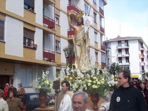 Esta última contará con la Virgen de la Alegría, que partirá de desde la Avenida Juan XXIII hasta la Avenida Jacetania, donde los pasos se separarán: el Cristo Resucitado continuará por esa avenida y la Virgen de la Alegría atravesará la plaza Biscós para reunirse de nuevo en la plaza de San Pedro.