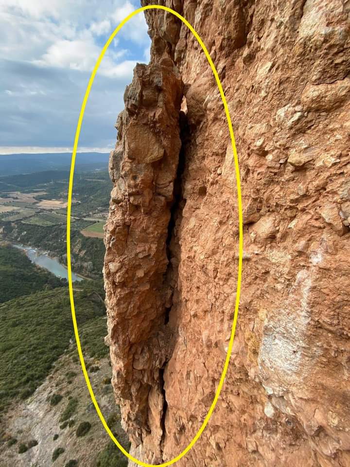 Hay que recordar que las posibilidades que se han propuesto para eliminar la laja serían rapelar y desmontarla, abrazarla con tensores e intentar que caiga, o aplicar micro voladoras, lo que sería lo más rápido y efectivo.