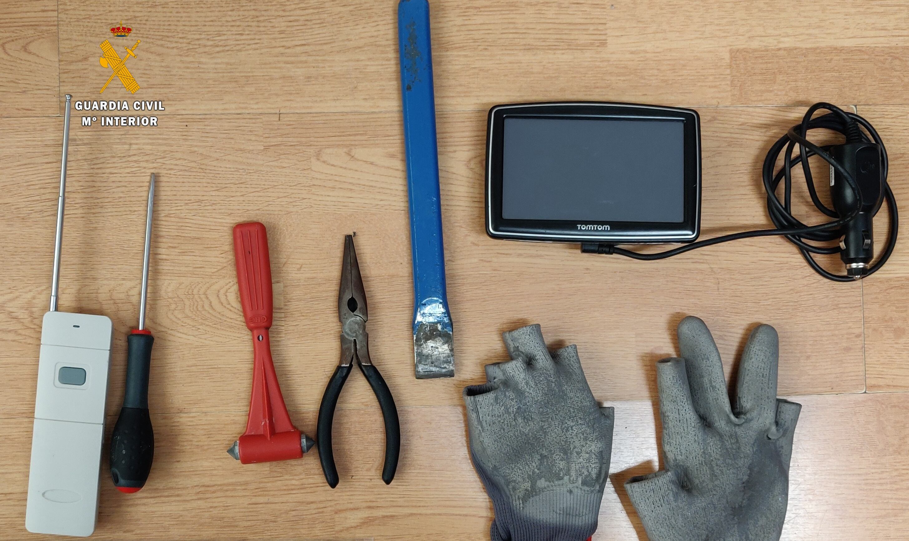 Tras solicitar apoyo de las patrullas de la Guardia Civil de Tamarite de Litera y Peralta de Alcofea, se procedió a dar el alto al vehículo y tras identificar a sus ocupantes se procedió a realizar un registro del vehículo, localizando en su interior 245 euros en metálico, un teléfono móvil y documentación personal, todo ello denunciado como sustraído, igualmente se intervinieron varios objetos de los utilizados habitualmente para cometer este tipo de delito, cómo un martillo de emergencia para romper cristales, un inhibidor de frecuencia y otro tipo de herramientas.