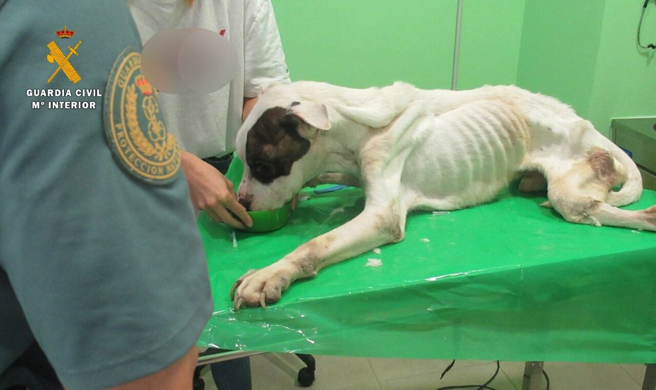 La patrulla se dirigió al lugar y localizó al animal en unas condiciones pésimas, con una delgadez extrema, debido a no haber recibido alimento en mucho tiempo, sin apenas poder moverse y en un estado crítico, por lo que fue trasladado de inmediato a una veterinaria de Fraga a fin de que fuera tratado e intentar su recuperación.