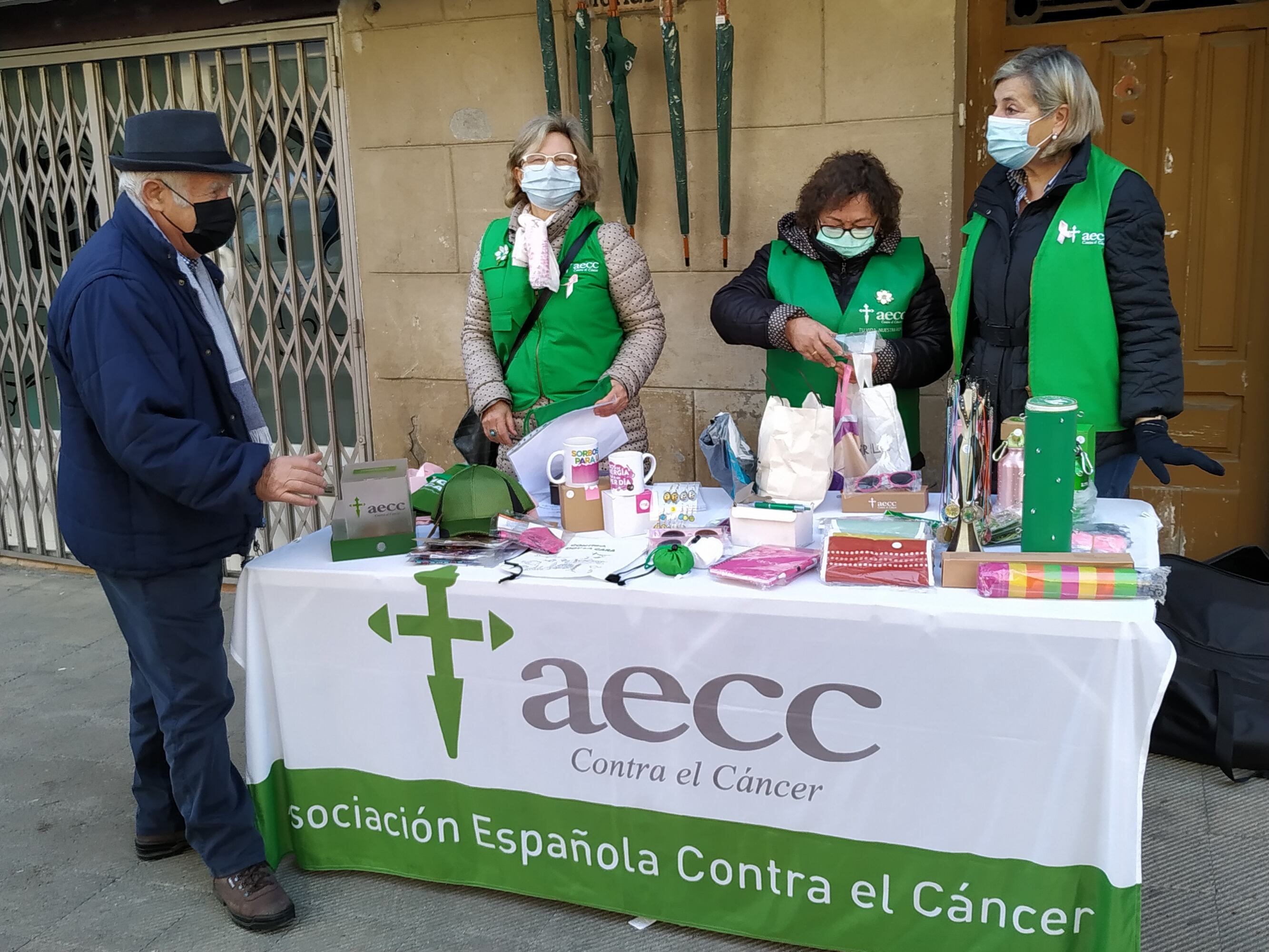 La calle Salamero de Graus ha sido el lugar en el que, este viernes 4 de febrero, Día Mundial contra el Cáncer, la junta local de la AECC ha ubicado la mesa informativa donde los vecinos han podido colaborar bien adquiriendo algunos de los artículos a la venta como paraguas, mascarillas, bolsas de tela o botellas, o simplemente, haciendo un donativo.