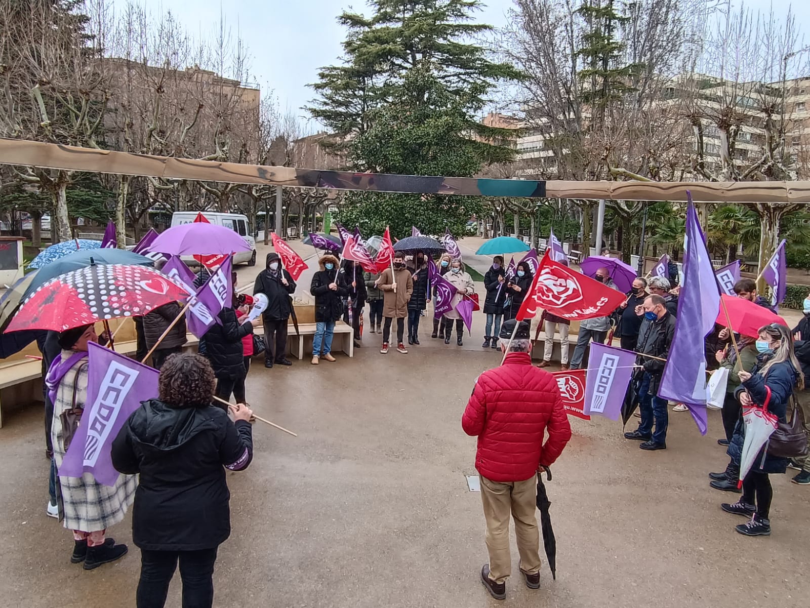 Los sindicatos UGT y CCOO se han concentrado en diferentes puntos del territorio aragonés con motivo del Día Internacional de la Mujer. No ha sido menos en Huesca, donde alrededor de 30 personas se han concentrado en la fuente 8 de Marzo del Parque Miguel Servet para leer un manifiesto en defensa de la igualdad para las mujeres.