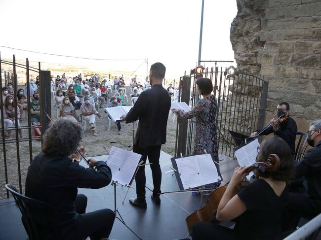Las magistrales voces de Hugo Bolívar y Ana Cristina Pimpinela fueron muy aplaudidas, ofreciendo unas sonoridades delicadas y muy bien matizadas que, pese a que a priori pudiera entenderse como un hándicap, el entorno patrimonial de las ruinas del castillo abrillantaba. La necesidad de búsqueda de espacios al aire libre que está marcando la presente edición del Festival de Música y Patrimonio EnClaves, que organiza la Comarca Hoya de Huesca|Plana de Uesca, está dando lugar al descubrimiento de nuevos espacios escénicos adecuados para la programación de música clásica.