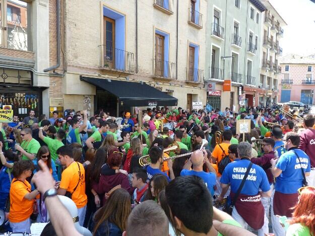 Los recorridos de las charangas amenizando la mañana barbastrense comenzarán al mediodía, tras la concentración de los participantes en la plaza San Francisco. Más de una hora de música por el centro de la ciudad dará paso a la reunión de las 13 charangas en el Paseo del Coso para “luchar” con su música en la batalla de charangas, tocando algunos de sus temas más pegadizos en solitario y de forma conjunta.