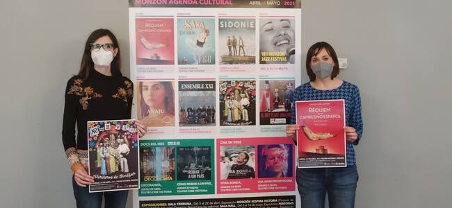 La concejal de Cultura, Nuria Moreno, y la técnico, Elena Franco, presentaban la programación de la agenda de abril y mayo que destaca por una mayor presencia musical en unas actividades en las que además habrá teatro, un monólogo, actuaciones infantiles , exposiciones, docs del mes y cine VOSE.