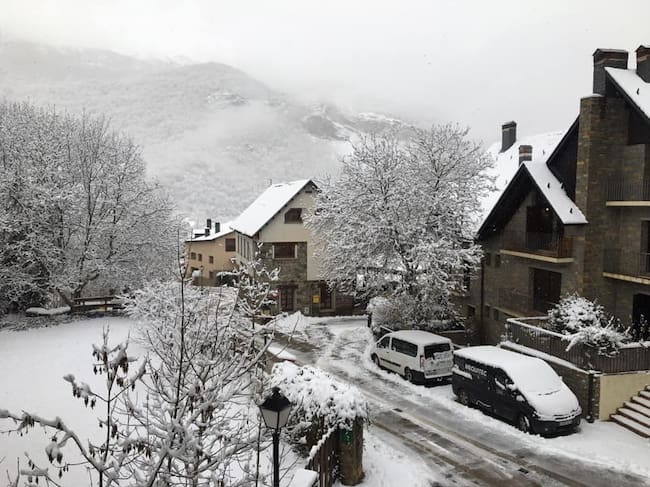 Comenzaba a nevar este domingo alrededor de las 22 horas y no paraba en toda la noche dejando acumulaciones de entre 5-10 centímetros en algunas localidades del valle de Benasque. En Graus caían entre 2-3 centímetros.