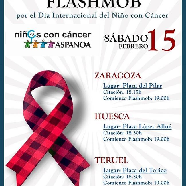 En el Flashmob, que se desarrollará a la vez y por primera vez en las tres capitales aragonesas, se bailará el Bolero de Caspe. Después del baile, tendrá lugar la lectura de un texto de apoyo al Día Internacional del Niñ@ con Cáncer.