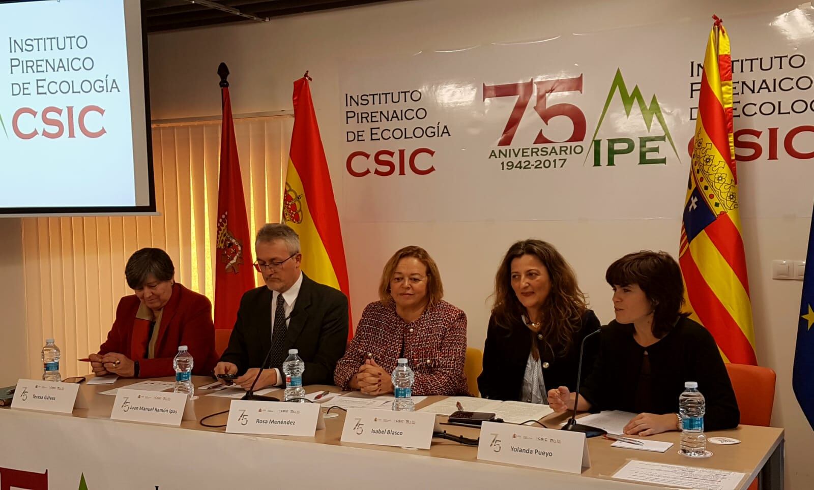 Al acto de conmemoración han asistido entre otras personalidades Isabel Blasco, subdelegada del Gobierno en Huesca; María Teresa Gálvez, directora general de Investigación e Innovación del Gobierno de Aragón; Juan Manuel Ramón, alcalde de Jaca; María Jesús Lázaro, delegada del CSIC en Aragón, y Yolanda Pueyo, directora del instituto.