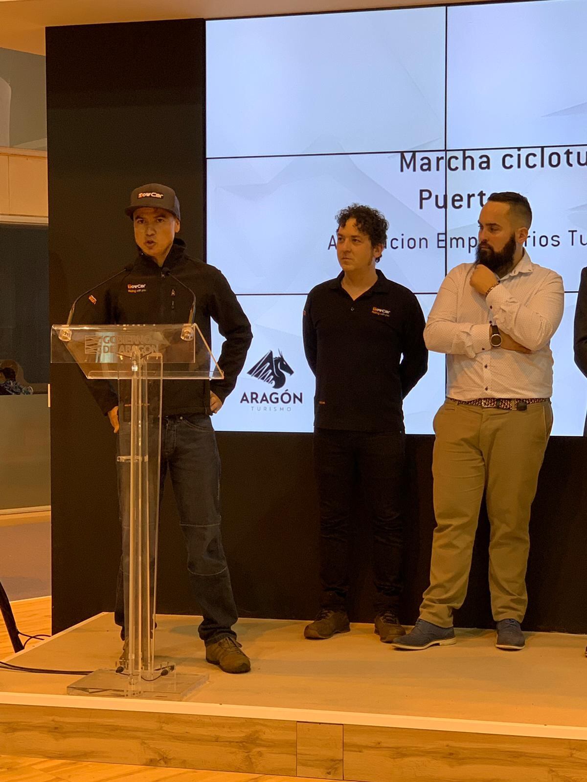 A Torres le acompañaba el vicepresidente de la Federación Aragonesa de Ciclismo, Alfonso García, el director de TowCar, Nelson Benito, y el exciclista