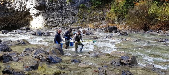 En el día de hoy, el director general de Gestión Forestal, Caza y Pesca, Ángel Berzosa, ha presenciado un muestreo de población de trucha autóctona en el río Bellós en el cañón de Añisclo (cuenca del Cinca), donde se han capturado 30 machos salvajes de trucha común, mediante pesca eléctrica. De la captura, se seleccionarán las truchas más puras, atendiendo a sus características fenotípicas y se les extraerá una pequeña cantidad de material biológico para su posterior análisis genético. Estos ejemplares se trasladarán a la Piscifactoría de Planduviar y, solamente a los individuos que resulten 100% autóctonos, se les extraerá el esperma para la fecundación de huevos.