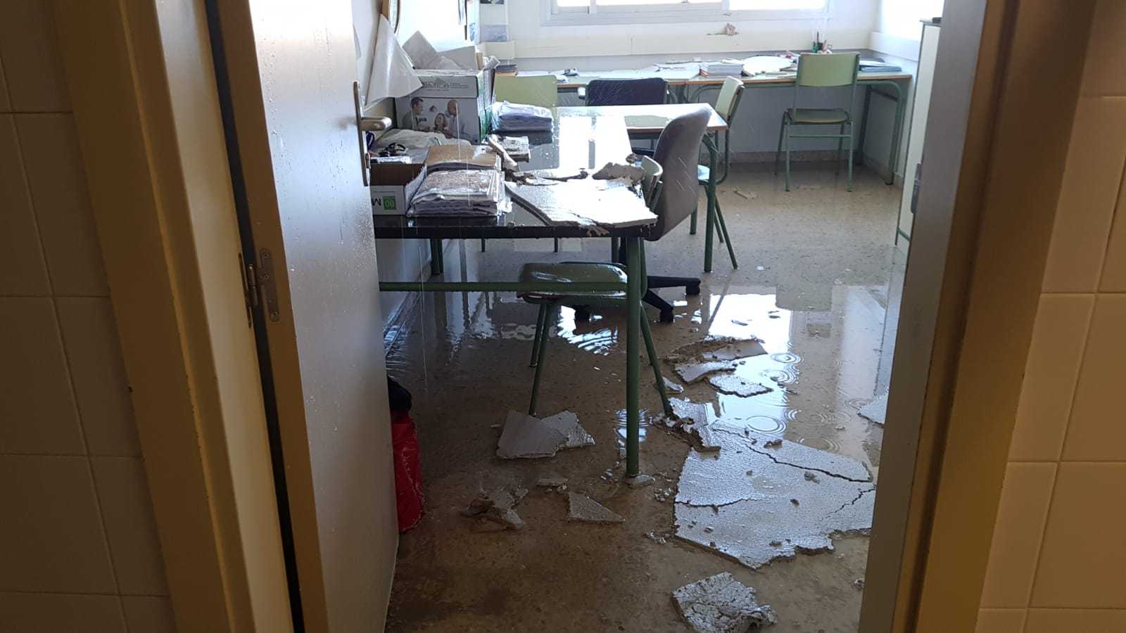La ruptura de una tubería provoca la caída de un falso techo en el IES San Alberto Magno