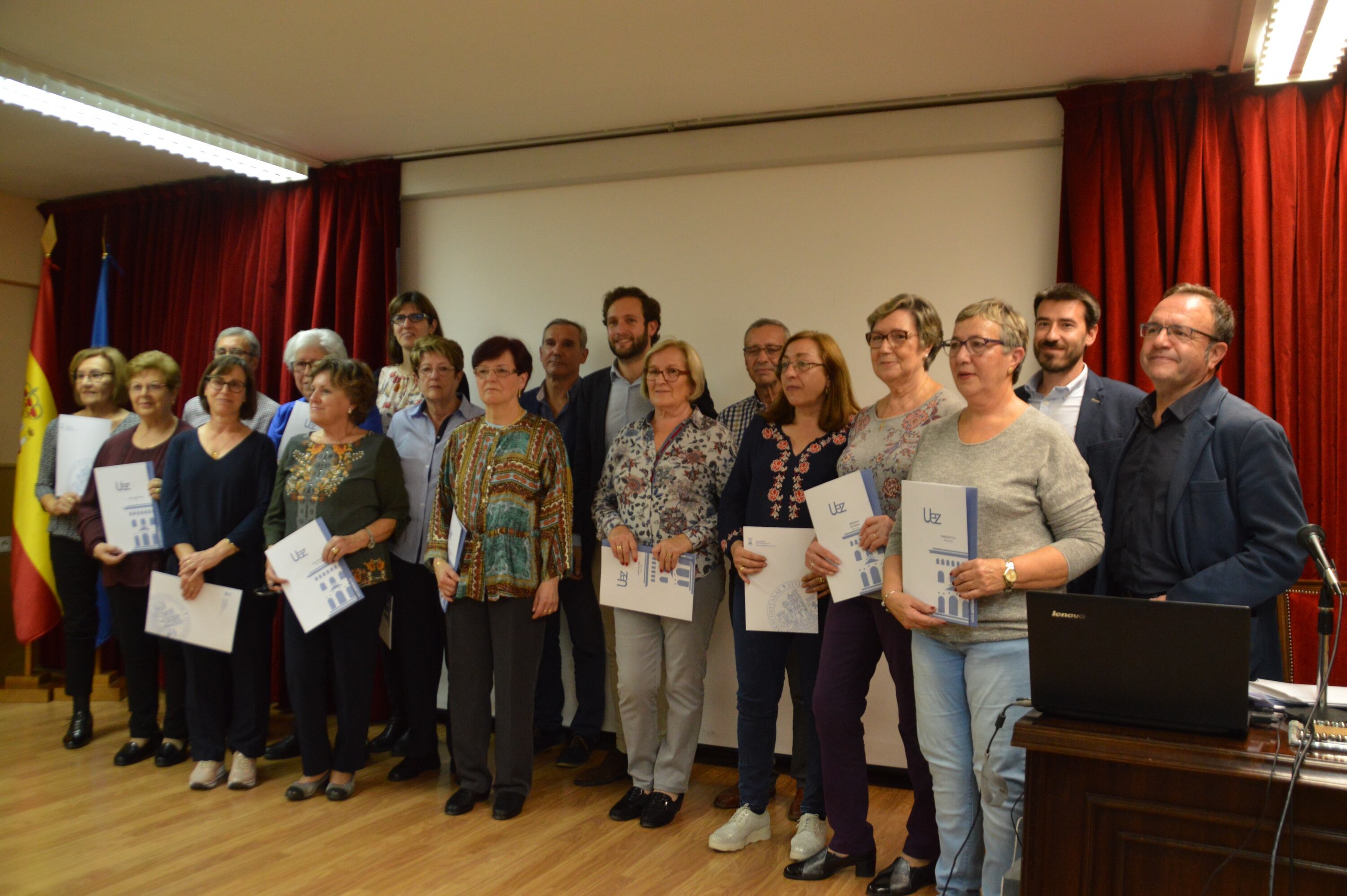 El nuevo curso arrancaba con la entrega de certificados a los 16 alumnos que el pasado curso finalizaban el primer y segundo ciclo del programa básico. El acto estaba presidido por alcalde de Monzón, Isaac Claver, el presidente de la Comarca del Cinca Medio, José Ángel Solans y el vicerector del Campus de Huesca, José Domingo Dueñas junto al coordinador del curso, Pedro Ciria.