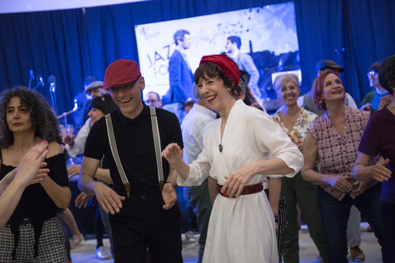 En vísperas de la celebración del Día Internacional del Jazz (30 de abril), en Fonz lo celebraba este sábado con la VI edición de la Trobada de Jazz que volvía a atraer hasta la localidad mediocinqueña a cientos de aficionados del género musical y a bailarines que tomaban la pista del Espazio Cultural L’Urmo desde primeras horas de la tarde. Precisamente la presente edición estrenaba nueva ubicación que se convertía por unas horas en la sede aragonesa del lindy – hop, modalidad surgida en las salas de jazz de Nueva York en los años 20 del pasado siglo y que convierten al festival de Fonz en único en su género en la provincia de Huesca. El EspazioL’Urmo se quedaba pequeño ante la gran afluencia de aficionados del jazz llegados de varias localidades, sobre todo en las horas centrales del festival. Alrededor de seiscientas personas se daban cita en este festival, muchas de ellas caracterizas de los años 20 con gorros, pantalones bombachos, faldas de vuelo …