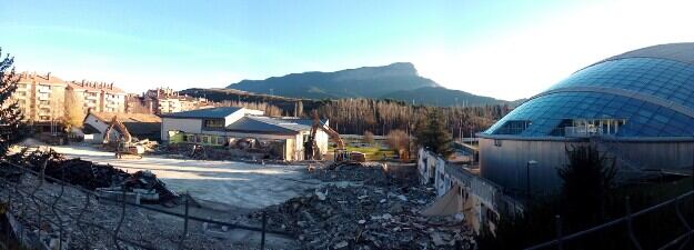 El edificio de la antigua pista de hielo de Jaca ya no existe. Los trabajos de demolición comenzaban a finales del mes de octubre pero la estructura ha desaparecido en escasas dos semanas. Es el primer paso para el proyecto de ampliación del área deportiva de Jaca y la construcción de un aparcamiento en superficie.