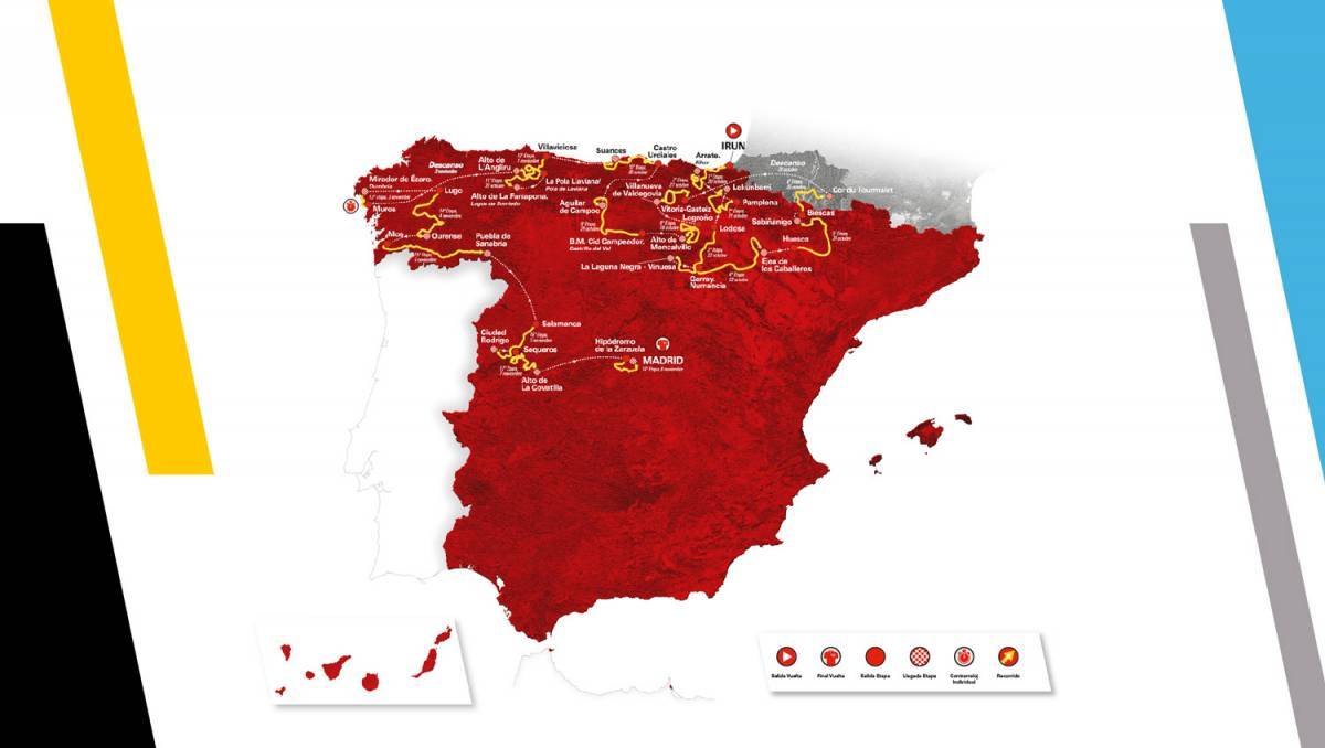La ronda española arrancará con la etapa Irún – Arrate. Eibar el martes, 20 de octubre, y terminará en Madrid el domingo, 8 de noviembre. En cuanto a las etapas previstas en la provincia de Huesca, tras el recorte del recorrido a 18 días, se disputarán el fin de semana del 24 y 25 de octubre y serán la quinta y sexta. El sábado, salida desde Huesca a Sabiñánigo y al día siguiente Biescas -Tourmalet, una de las etapas más importantes de la ronda española.