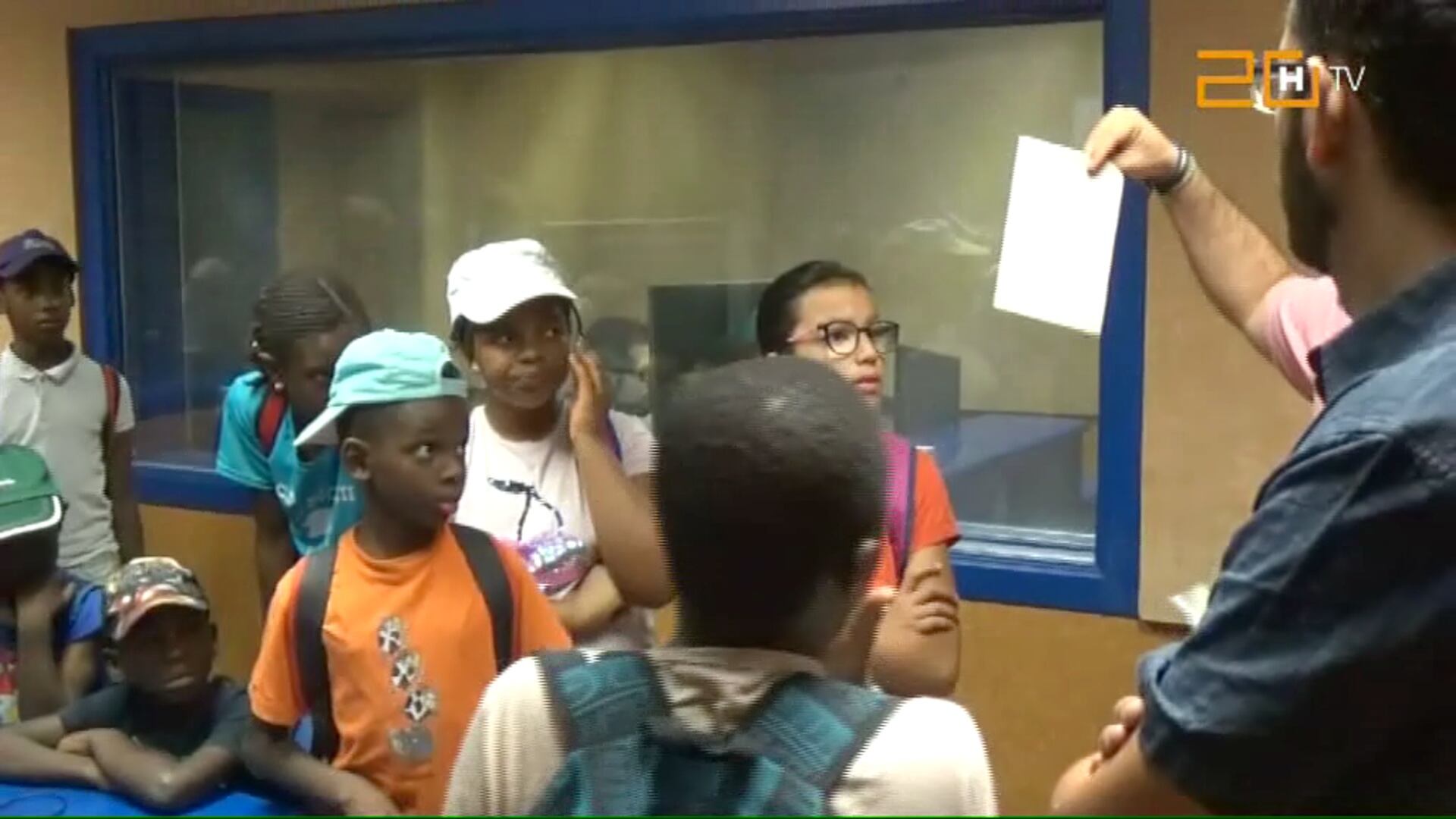 Más de cincuenta niños que participan en las colonias de verano organizadas por Cáritas Huesca visitaban las instalaciones de Radio Huesca y Htv