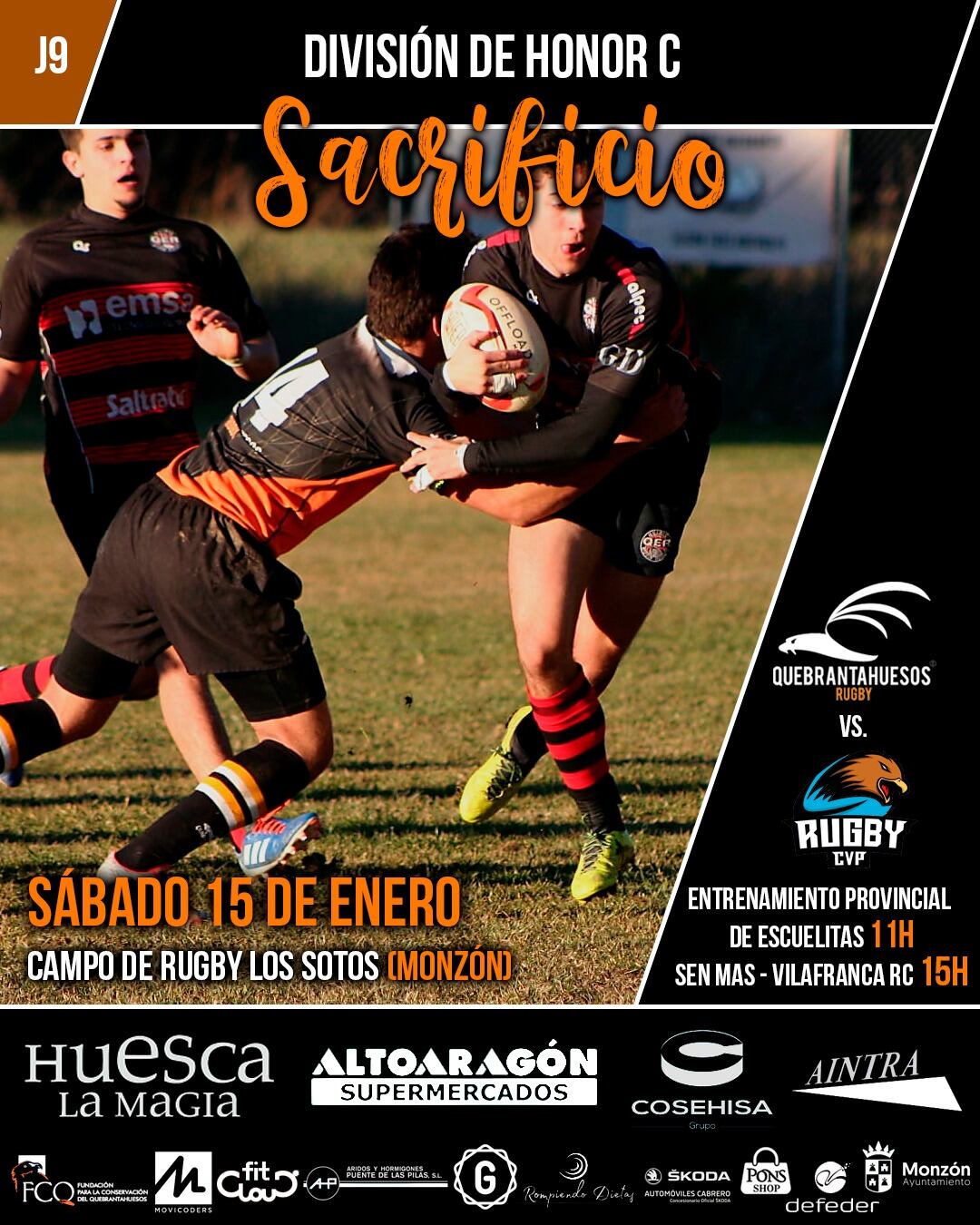 Gracias a los patrocinadores que hacen posible que el rugby tenga su lugar en la provincia de Huesca: Huesca La Magia, Fundación para la Conservación del Quebrantahuesos, Grupo Cosehisa, Automóviles Cabrero, Green: Entrenamiento Funcional y Jardín, Fit Cloud, Fertilizantes Ecológicos Defeder, Aintra, Ayuntamiento de Monzón, Grupo Pons, Supermercados AltoAragón, Movicoders, Bar El Pasaje y Rompiendo Dietas.