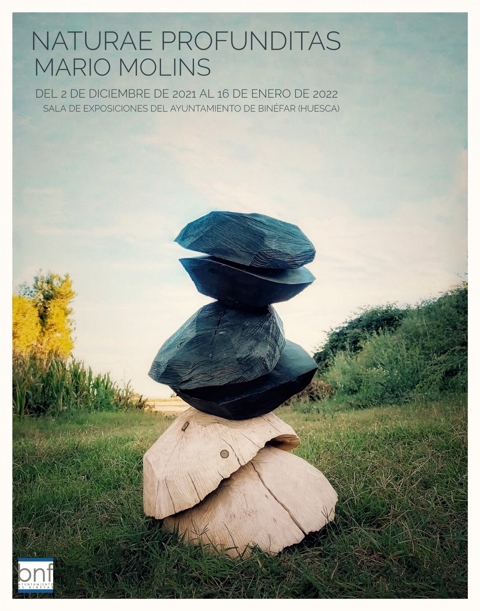 Mario Molins inaugurará su exposición el 2 de diciembre a las 19.30 h con una conferencia que ha titulado "La naturaleza de la creación. De la poesía a la obra plástica” y que se desarrollará en el salón de actos de la Casa Consistorial. A continuación, a las 20.30 h, se abrirá la muestra de esculturas y grabados de este artista binefarense. Molins explica sobre su conferencia que “en el Arte como en la Naturaleza los procesos de creación son místicos y de una complejidad elevada”. Añade que, en su caso, su herramienta reflexiva “es la escritura, concretamente la poesía, a partir de ésta y tras la observación de la materia arbórea surgen las formas que desarrollo en mis esculturas y grabados”, por lo que, en esta conferencia, Mario Molins explica su particular manera de reflexionar en torno a la naturaleza, tanto la humana como la real.