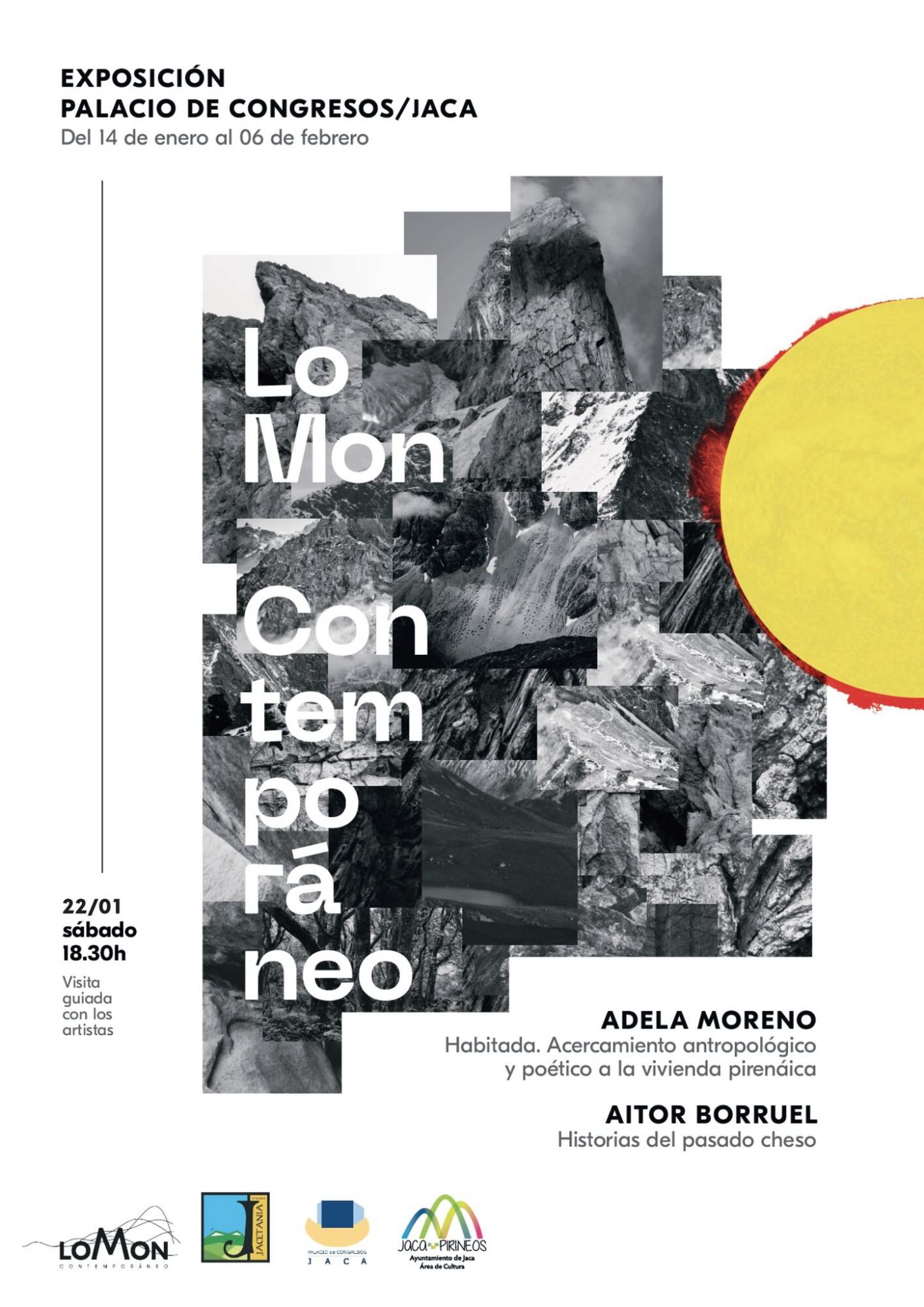 Del 14 de enero al 6 de febrero, en horario de 17h a 21h, se podrán visitar en la Sala de Exposiciones del Palacio de Congresos de Jaca las obras del fotógrafo cheso Aitor Borruel y de la artista multidisciplinar oscense Adela Moreno. El sábado 22 de enero, a las 18:30h, se realizará una visita guiada a la exposición con los artistas. La muestra está organizada por la Comarca de la Jacetania, con la colaboración de los Ayuntamientos de Jaca y Hecho.