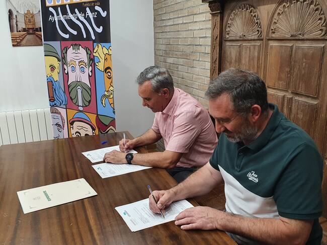Con la firma de las actas de entrega y recepción culmina la cesión del terreno municipal que el Ayuntamiento de Fonz ha puesto gratuitamente a disposición de la Comarca del Cinca Medio para que se puedan desarrollar las obras de construcción de la residencia comarcal de personas mayores. El alcalde de Fonz, Toño Ferrer, y el presidente de la Comarca del Cinca Medio, José Ángel Solans, firmaban los documentos respectivos.