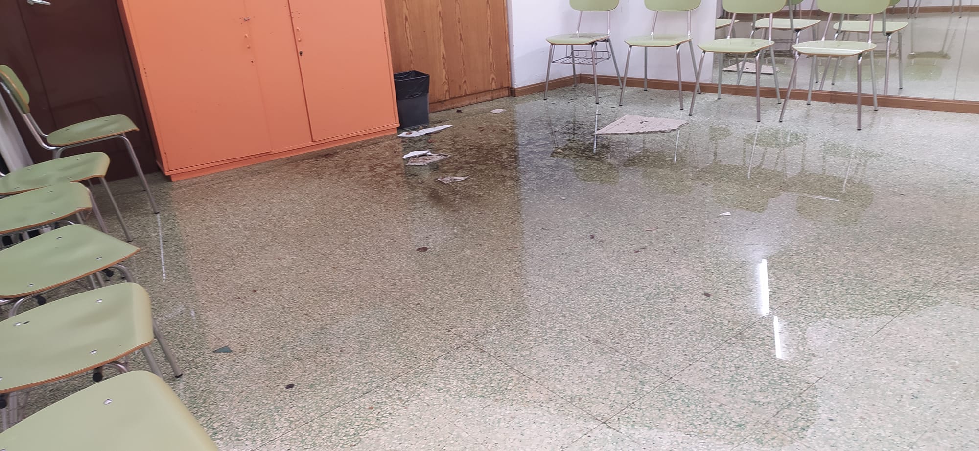 Desde la asociación se recuerda que cada vez que llueve un poco más de lo normal las goteras y las filtraciones aparecen. La tormenta caída el pasado fin de semana provocaron varios destrozos en el techo lo que permitió la entrada libre del agua.