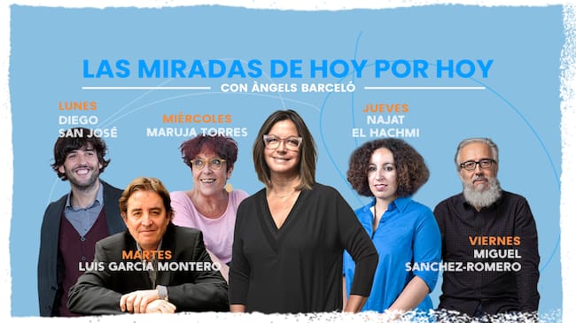 Esta semana se ha estrenado en el programa Hoy por Hoy, de la Cadena SER, la nueva sección Miradas, que podrá escucharse de lunes a viernes en torno a las 7:45 horas. En el espacio sonarán las voces de cinco personalidades reconocidas del ámbito del periodismo, la literatura y la comunicación que aportarán su mirada personal sobre las cuestiones más relevantes del momento. Los lunes, el guionista Diego San José; los martes, el poeta y director del Instituto Cervantes Luis García Montero; los miércoles, la periodista Maruja Torres; los jueves, la escritora Najat El Hachmi y, los viernes, el guionista Miguel Sánchez-Romero trasladarán a los oyentes sus miradas con nuevos enfoques y puntos de vista.