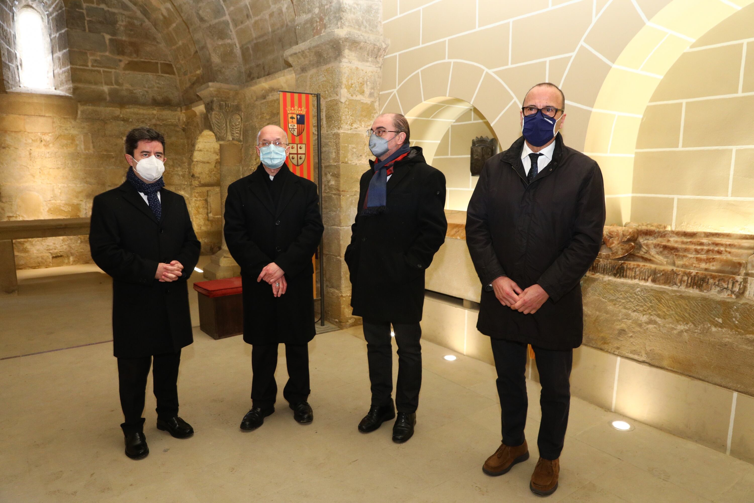 En la visita a las obras, el presidente autonómico, Javier Lambán, acompañado de otras representaciones de Patrimonio, Cultura y Ayuntamiento de Huesca, anunciaba que los trabajos que se están acometiendo en este conjunto monástico son el primer paso para acometer obras otros panteones reales de Aragón, como San Juan de la Peña.