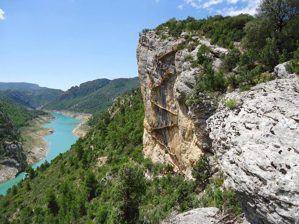 La ruta por las escaleras adosadas a la roca se puede realizar, no así el congost de Montrebei (parte catalana) que permanece cerrado