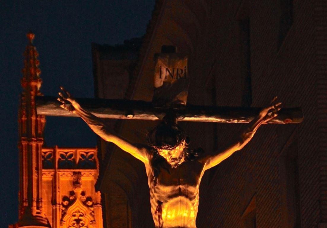 Saldrán a las 00.30 y 00.45, respectivamente. La Dolorosa, desde la Catedral; y el Cristo del Perdón, desde la iglesia de Santo Domingo y San Martín; para encontrarse en la plaza San Pedro y culminar, juntas, en la iglesia de Santo Domingo.
