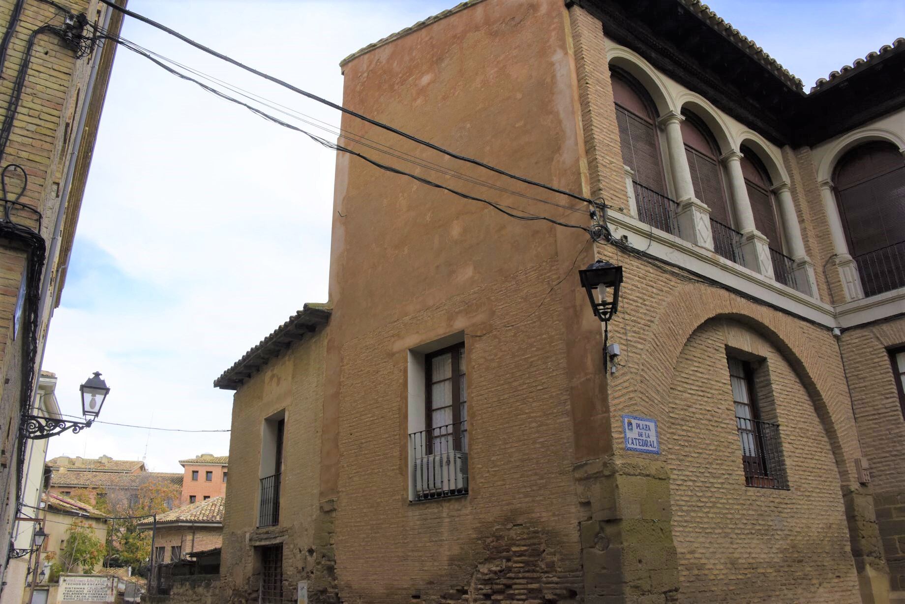 Lavado de cara a un lateral de la Casa de los Canónigos de Huesca