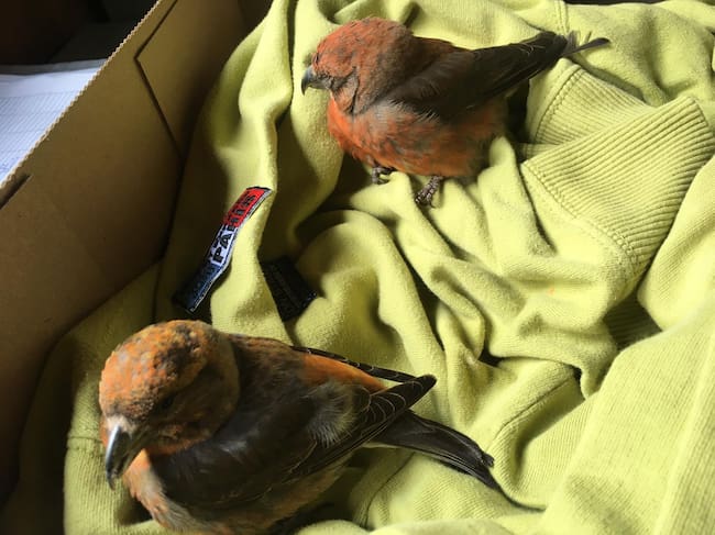Los piquituertos son unos pájaros muy parecidos a los gorriones. Lo que les identifica es su pico en forma de pinza que les permite alimentarse de las semillas de los abetos y pinos negros.