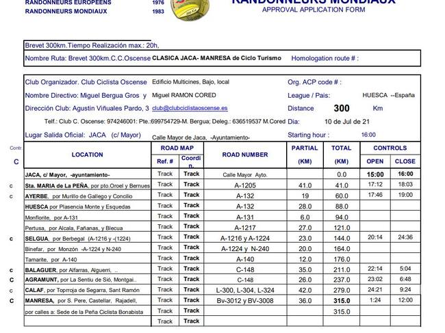 Este sábado se celebra la 5ª Brevet del año 2021, que partirá desde Jaca con una distancia de 300 kilómetros hasta Manresa. Organizada por el Club Ciclista Oscense, se trata de una edición especial con características diferentes, entre las que destaca su condición de lineal y nocturna. La salida tendrá lugar el sábado en la calle Mayor de Jaca, junto al Ayuntamiento de la localidad, a las 16 horas, y la llegada a Manresa está prevista para las 8:50 horas del domingo.