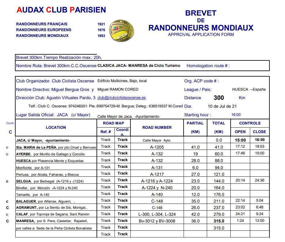Este sábado se celebra la 5ª Brevet del año 2021, que partirá desde Jaca con una distancia de 300 kilómetros hasta Manresa. Organizada por el Club Ciclista Oscense, se trata de una edición especial con características diferentes, entre las que destaca su condición de lineal y nocturna. La salida tendrá lugar el sábado en la calle Mayor de Jaca, junto al Ayuntamiento de la localidad, a las 16 horas, y la llegada a Manresa está prevista para las 8:50 horas del domingo.