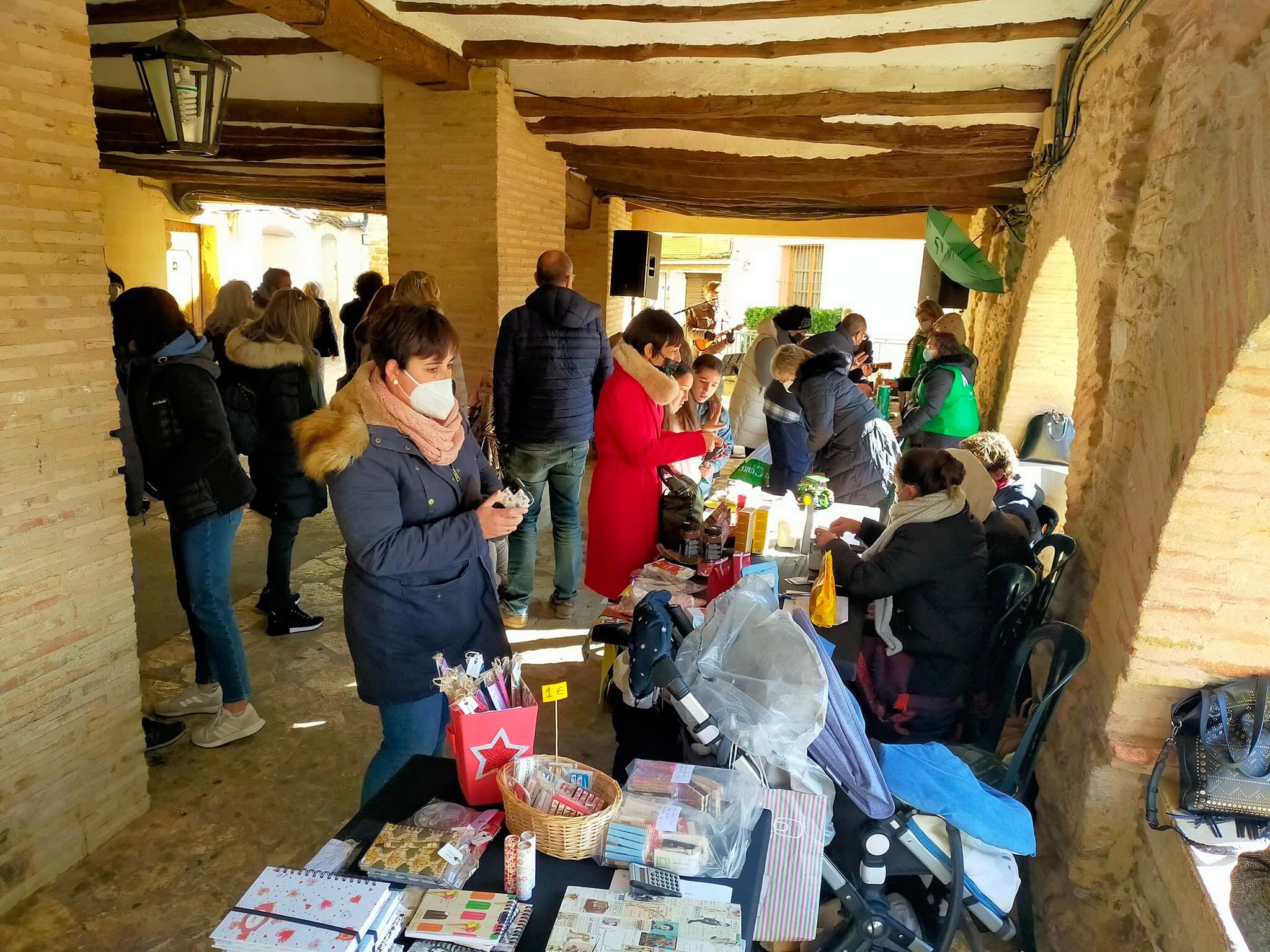 A pesar del frío, la lluvia e incluso agua nieve, la XI Feria Solidaria de Santa Bárbara, que se celebraba este domingo en Benabarre tras haberla tenido que suspender en 2020 por la pandemia, resultaba bastante animada. Aunque inicialmente se iba a ubicar en la plaza mayor, finalmente, se llevaba a cabo en la zona de porches.