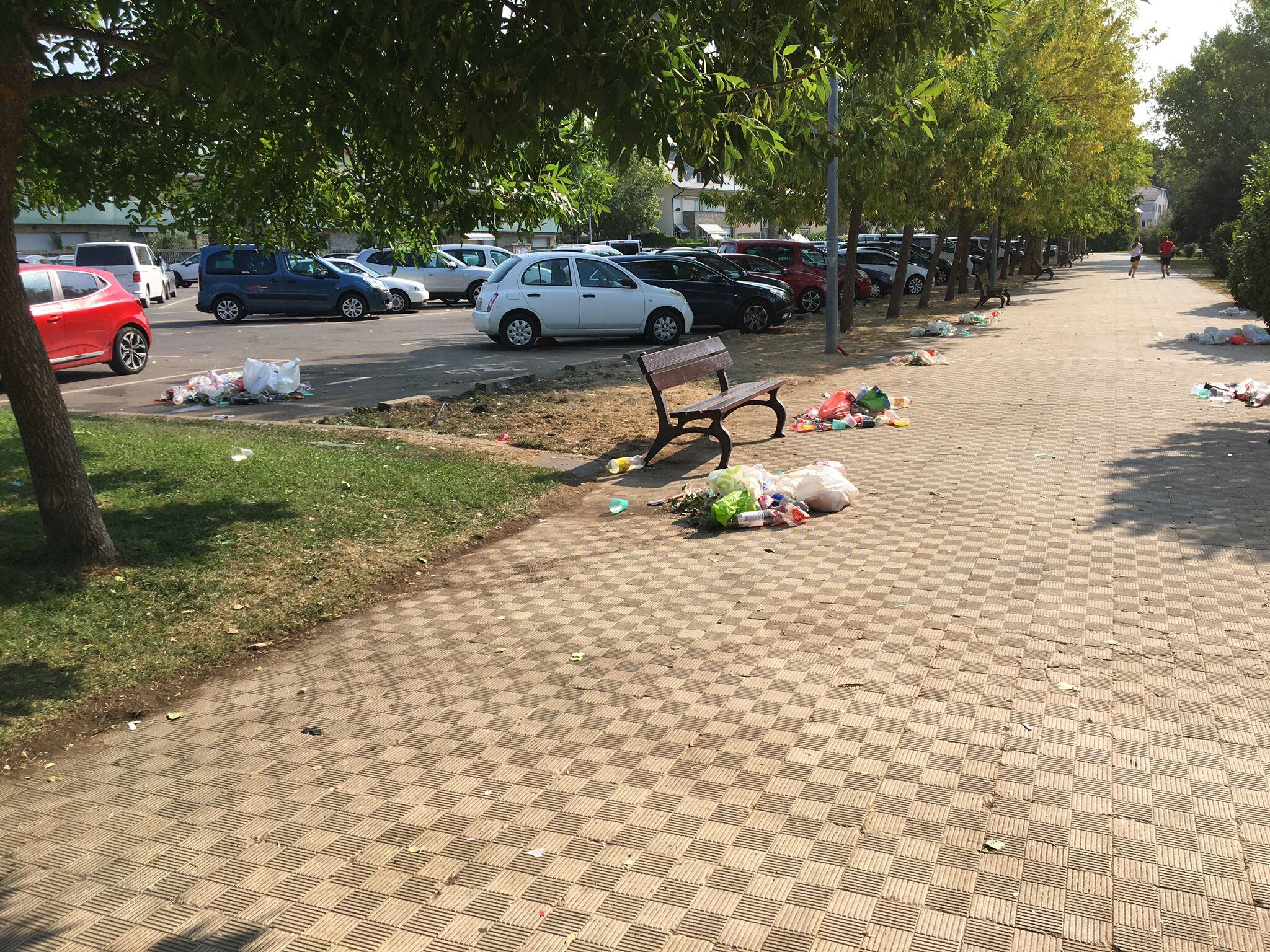 En la noche del sábado el botellón fue protagonista hasta altas horas de la madrugada. Los vecinos se quejan del ruido, la poca vigilancia y sobre todo de la suciedad, mala educación e incivismo que se ha podido ver. Entorno a las 11 de la mañana el servicio de limpieza de GRHUSA comenzaba la limpieza de la zona.