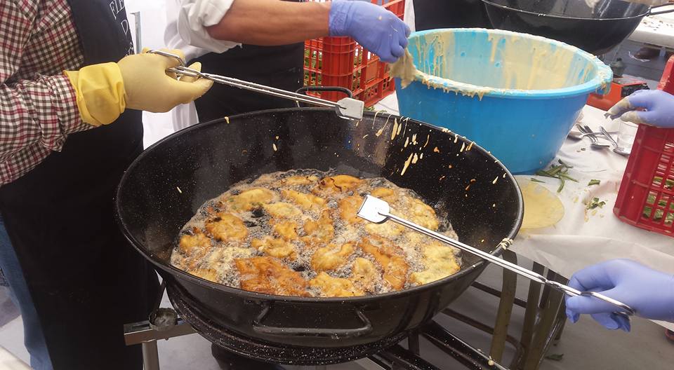 La elaboración de los crespillos comenzará a las 9 y, a partir de las 13h habrá reparto y degustación de este postre elaborado con hojas de borraja que se rebozan en una pasta de harina, huevos, azúcar, leche, o granos de anís y, posteriormente, se fríen en aceite de oliva y se espolvorean con azúcar.
