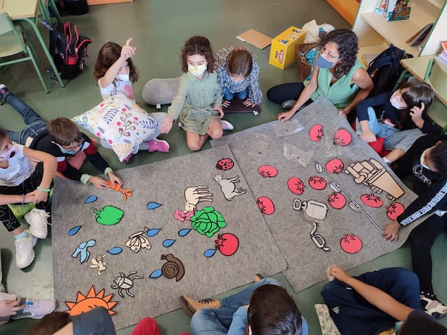 A través del juego, de una manera visual, y empleando los sentidos, los escolares descubrían las diferencias entre ambos tomates y reflexionaban acerca de las consecuencias de ambos sistemas de producción tanto para la salud como para el medio ambiente para acabar concluyendo que cuando comemos un tomate del huerto estamos beneficiándonos nosotros y el resto del planeta.