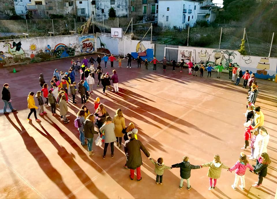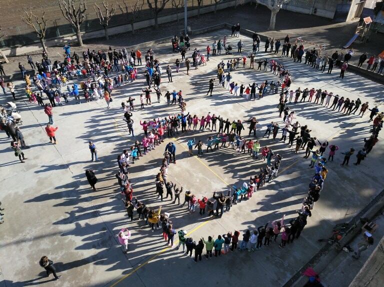 También en el colegio de Benabarre se celebraba el Día Escolar de la Paz y la No violencia en el patio exterior donde se daba lectura al Manifiesto por la Paz elaborado por los alumnos de 6ª de educación primaria. ‘Un mundo al revés queremos, un mundo al revés del que tenemos. Donde la igualdad no sea necesidad. Donde el miedo no sea realidad. Donde el amor exista de verdad. Donde la sonrisa tenga prioridad. Donde la violencia no se presente en la sociedad…’.