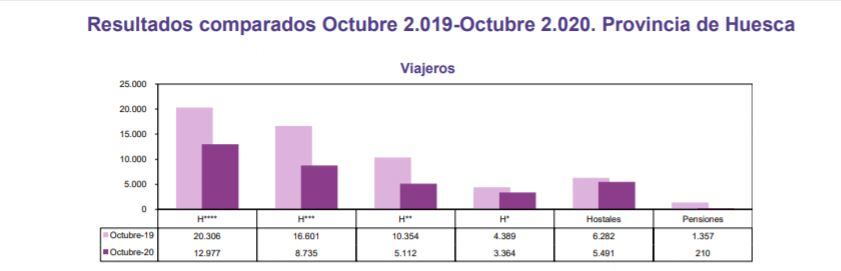 Durante el pasado mes de octubre los hoteles de la provincia de Huesca contaron con un total de 35.889 viajeros, casi un 40% menos que en el año anterior, según los datos publicados en la encuesta de ocupación hotelera del Instituto Nacional de Estadística.