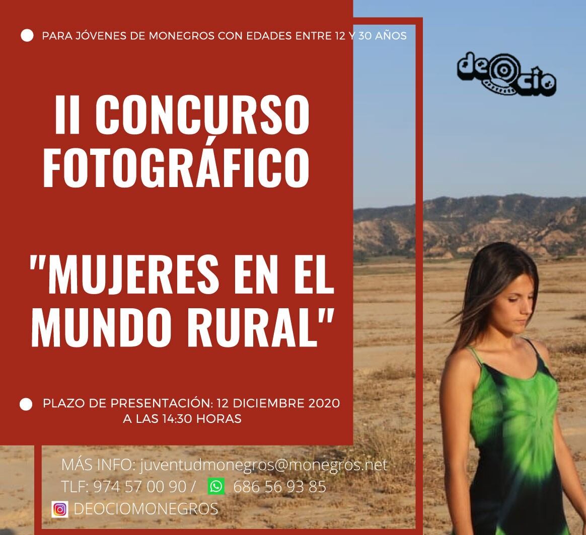 La Fundación para la Promoción de la Juventud y el Deporte de la Comarca de Los Monegros organiza la segunda edición del concurso fotográfico “Mujer rural” en el que pueden participar jóvenes de Los Monegros con edades comprendidas entre los 12 a 30 años.