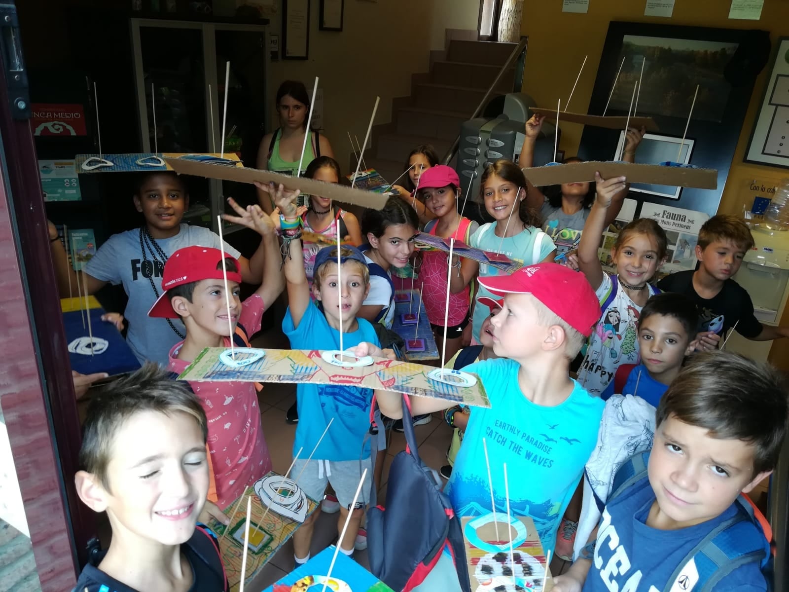 Durante la primera mañana en el centro medioambiental Pinzana han disfrutado de juegos para conectar con la naturaleza, comprobando cómo la acción del hombre puede dañar el entorno, y han creado un juguete con cartón reciclado, con el que, una vez decorado, han demostrado su habilidad con el tiro al aro.