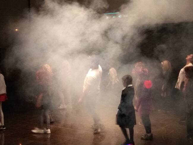 En Graus, las actividades se desarrollaban entre la biblioteca, donde los niños disfrutaban de un cuentacuentos y un taller en el que elaboraban un sombrero de bruja, y Espacio Pirineos, que se convertía en una sala de cine en la que, en versión original se proyectaban dos películas ‘Pesadillas’ y ‘Déjame entrar-Let me in’, y también en un escenario porque los niños del taller de break dance de Benjamín Cortés bailaban el famoso ‘Thriller’ de Michael Jackson.