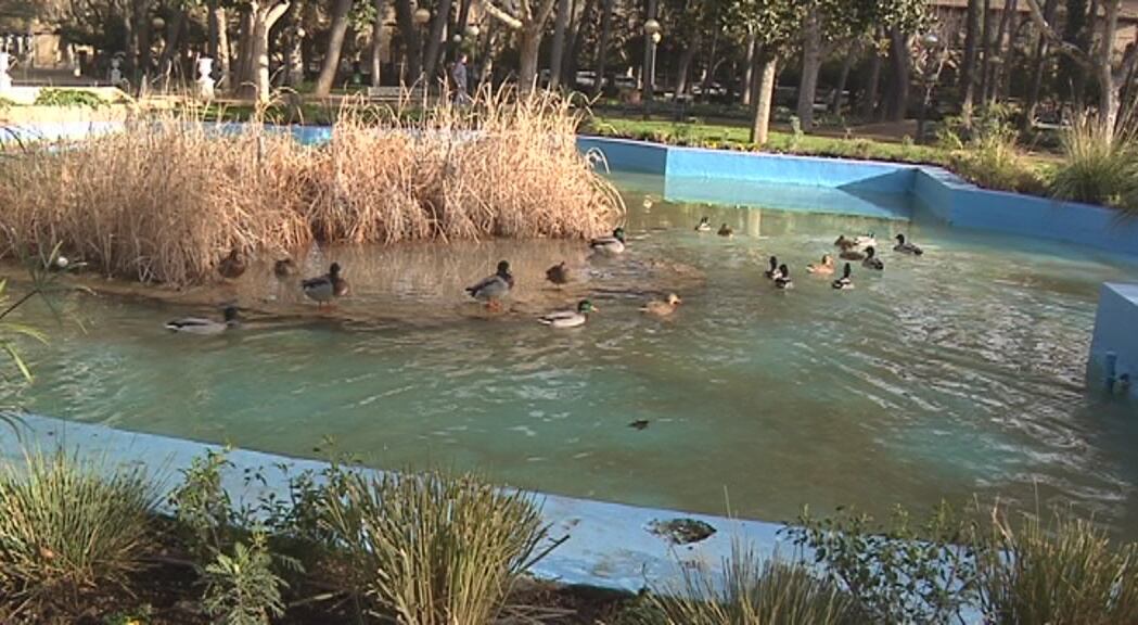 Los patos del parque Miguel Servet de Huesca se han mudado a otro estanque, pero lo hacen de forma provisional. Una empresa especializada está realizando labores de limpieza del estanque del parque. Son trabajos periódicos que en este día han dejado este lago artificial vacío. Mientras duran estos trabajos los patos del parque se han trasladado a otro estanque cercano, también en el parque. Son ellos mismos los que han buscado otro emplazamiento provisional y se han mudado a otro estanque a escasos metros. Allí permanecerán hasta que se acabe de limpiar su casa.